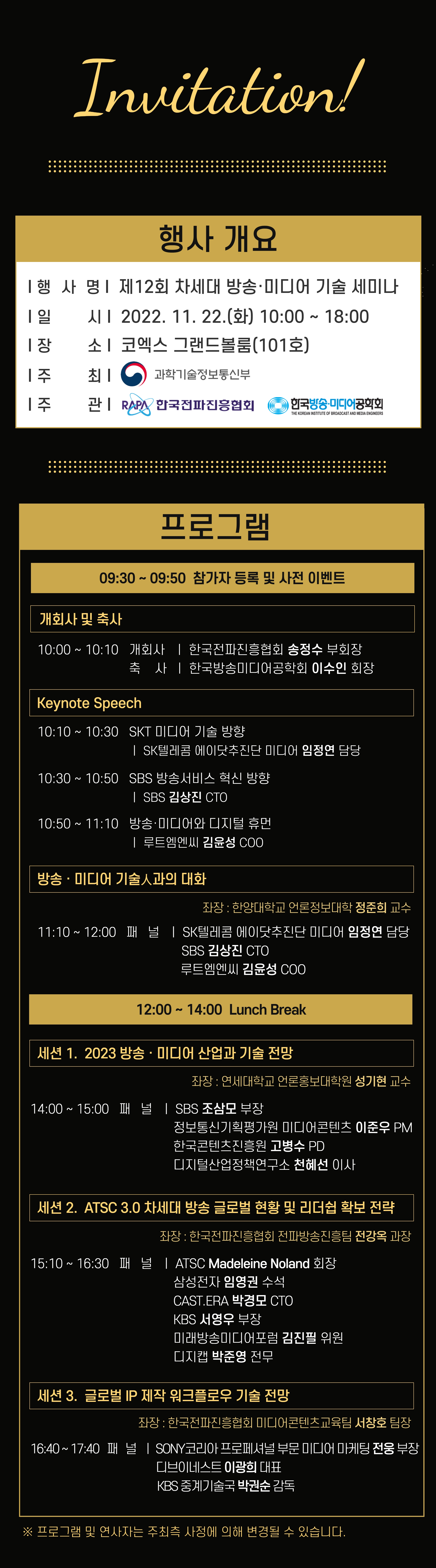 제12회 차세대 방송·미디어 기술 세미나가 ’22. 11. 22(화) 코엑스 그랜드볼룸에서 개최되었습니다!