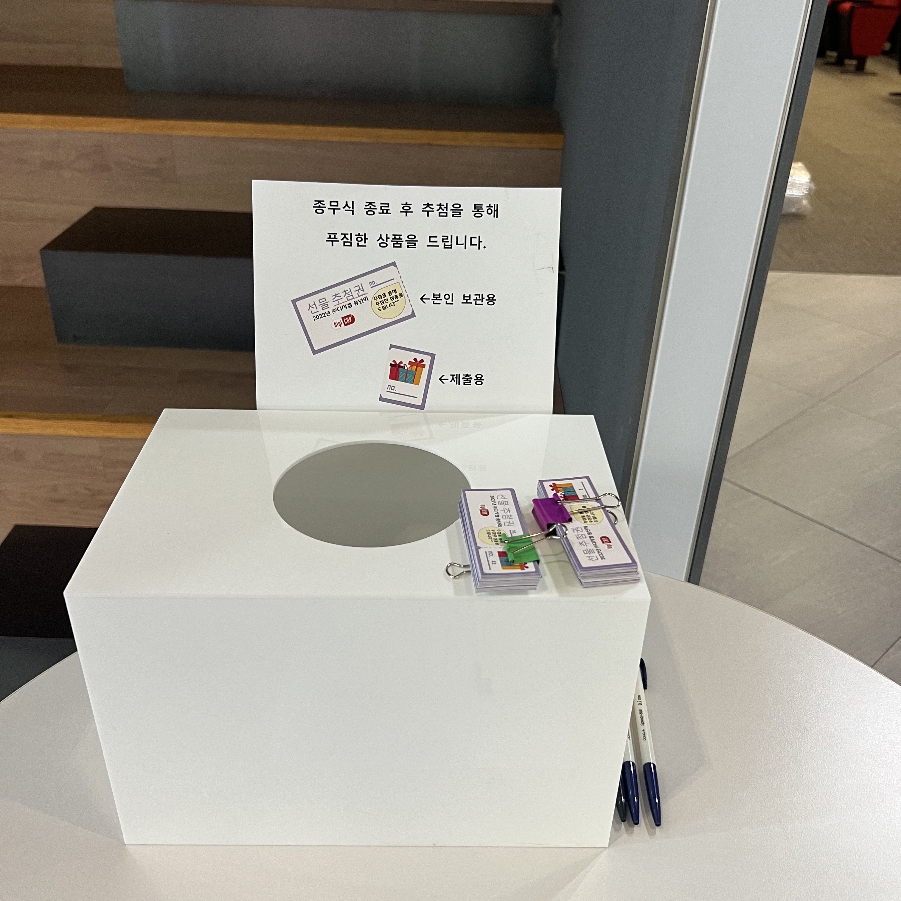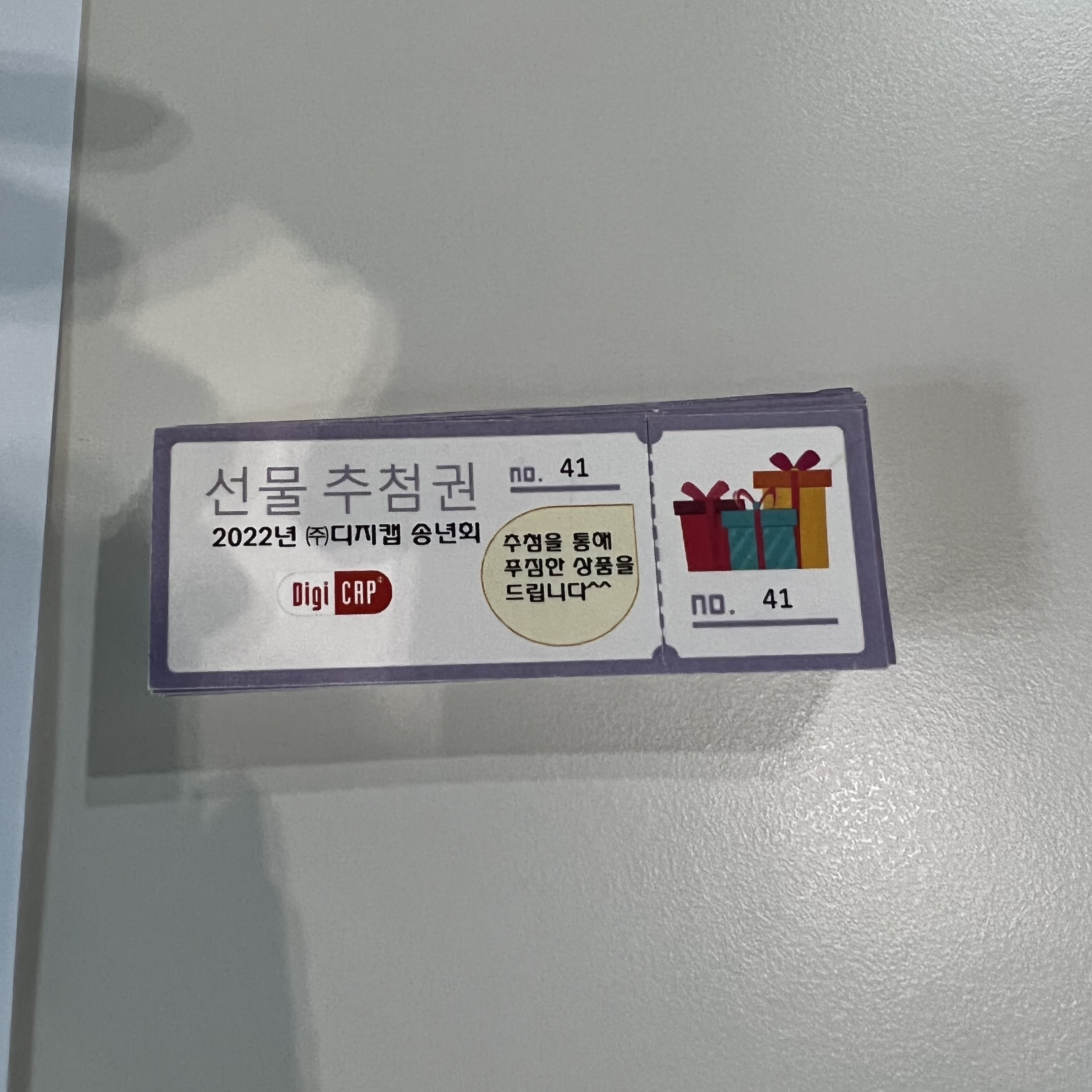 선물 추첨을 위해 각자 추첨권을 가져가셨는데요